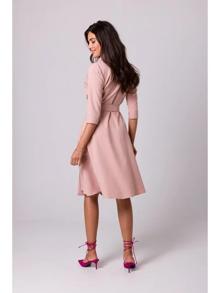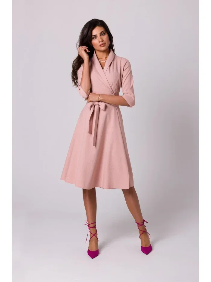 Přidání recenze k B255 Zavinovací šaty se šálovým límcem - růžové