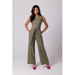 B256 Kombinéza bez rukávů s kapsami - olivová