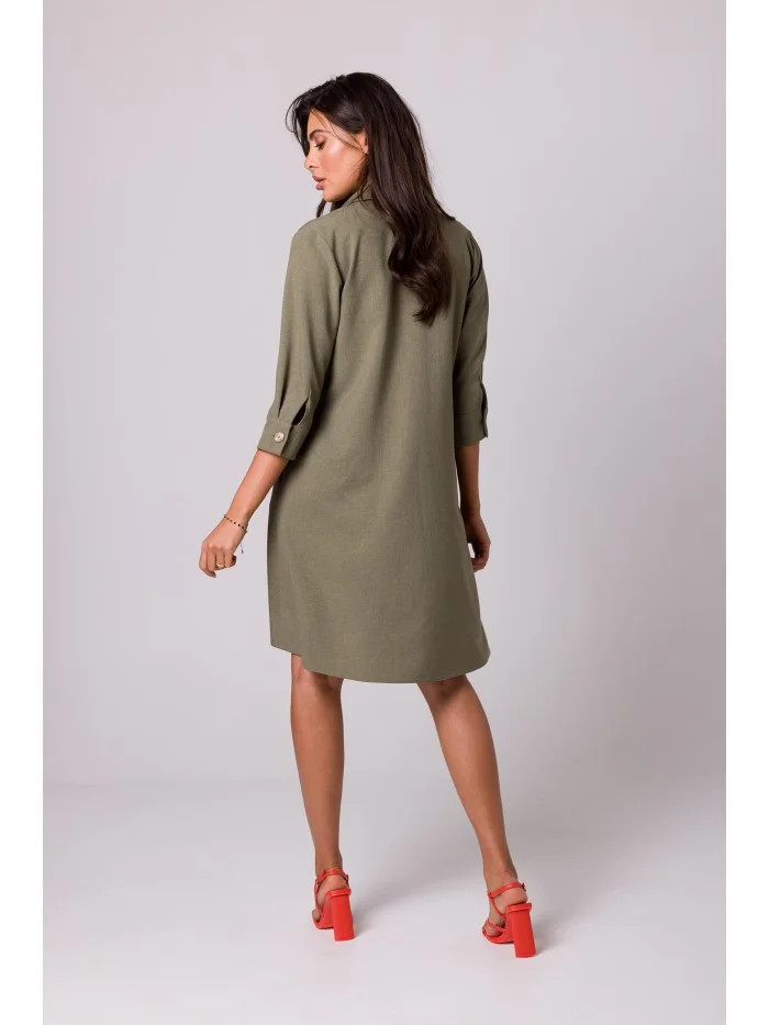 B257 Rozšířené košilové šaty - olivové