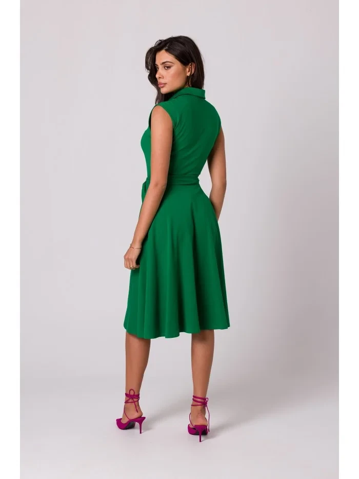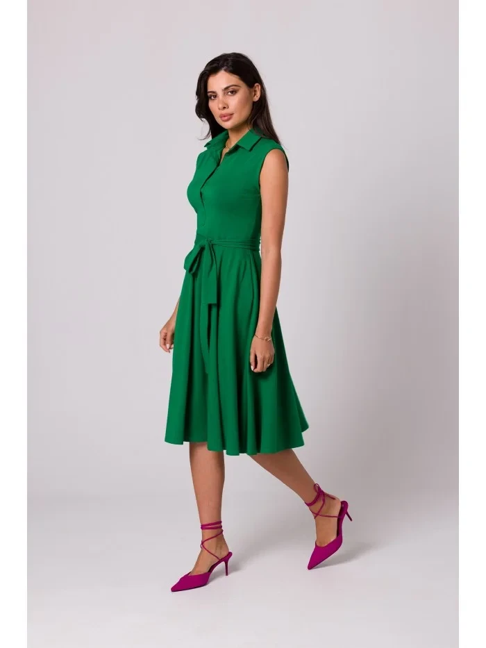 B261 Bavlněné šaty ve fitted střihu - zelené