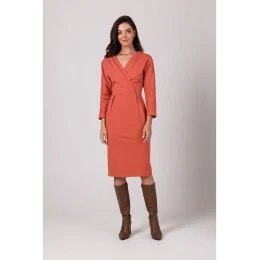 DETAILY PRODUKTU: úplet na bázi bavlny plášťové šaty se zavinovací horní částí přetaženou přes hlavu skrytý boční zip netopýří rukávy tříčtvrteční délka vypasovaná sukně ke kolenům s rozparky na zádech naše modelka je 172 cm vysoká a nosí velikost S navrženo a vyrobeno v Polsku