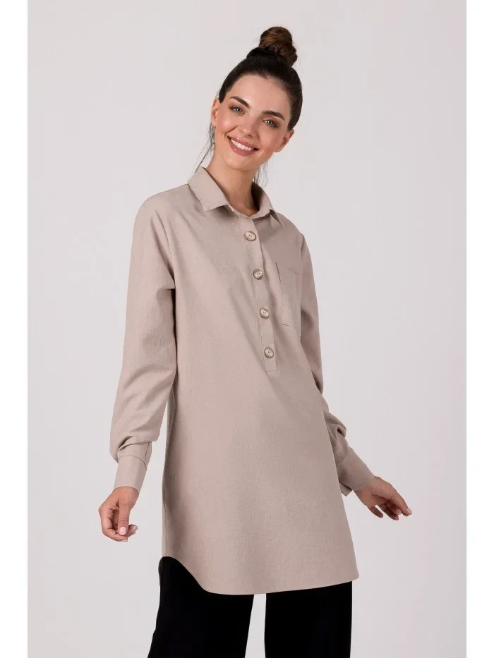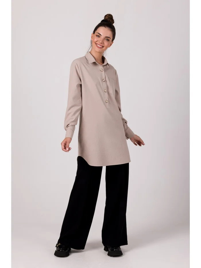Objevte pohodlí a eleganci s touto pruhovanou tunikou. Tuniková košile má polodlouhé rukávy, kapsu na přední straně a obrácený límec, který jí dodává moderní vzhled. Vyrobena z viskózy, je ideální pro každodenní nošení a zajišťuje příjemný pocit po celý den. Skvélé pro ležérní, ale stylový outfit.