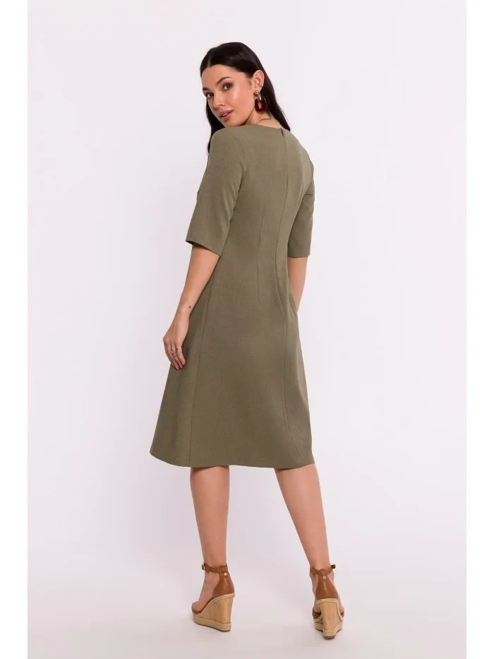 model 19670411 Šaty s výstřihem do V olivově zelené - BeWear