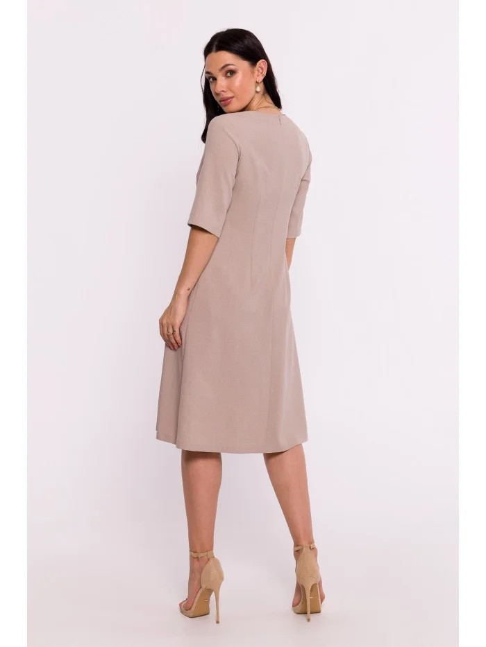 B280 Trapézové šaty s výstřihem do V - béžové