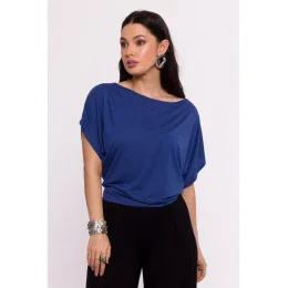 B287 Viskózový top s výstřihem na ramena - modrý