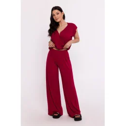 B289 Viskózové kalhoty s elastickým pasem - bordó