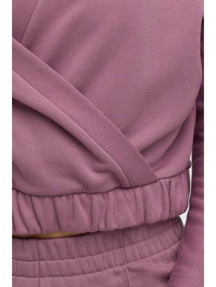 MATERIAL Material: Thick sweatshirt fabric 90% cotton 10% polyester PRODUCT DETAILS Neckline: Wrap V-neck