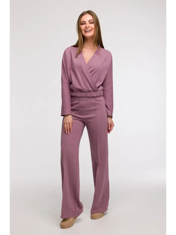 Designed and made in Poland FIT & CUT Fit: Loose wrap-style sweatshirt (overlapping front in a V shape), with an elastic waistband that accentuates the silhouette
