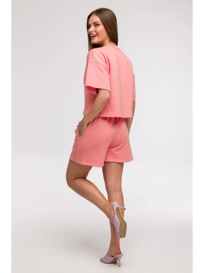 B294 Oříznutá mikina s krátkým rukávem - korálová