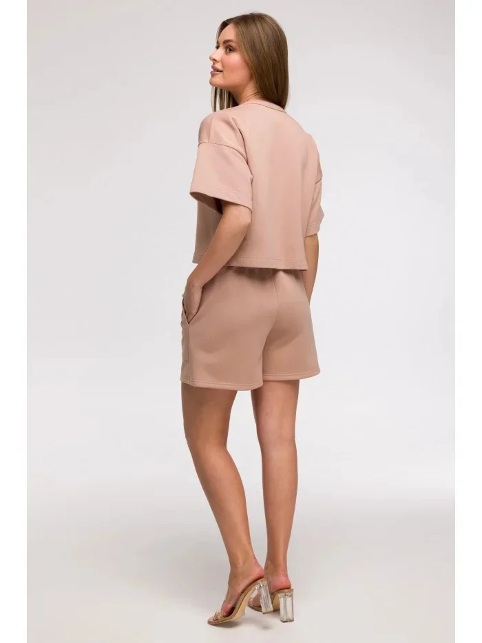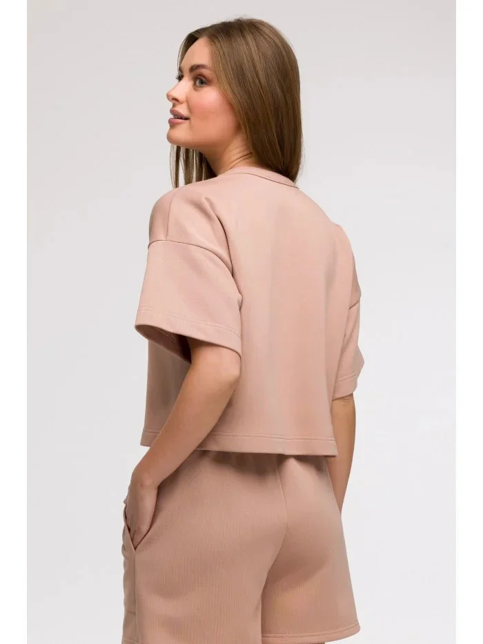 B294 Oříznutá mikina s krátkým rukávem - mocca