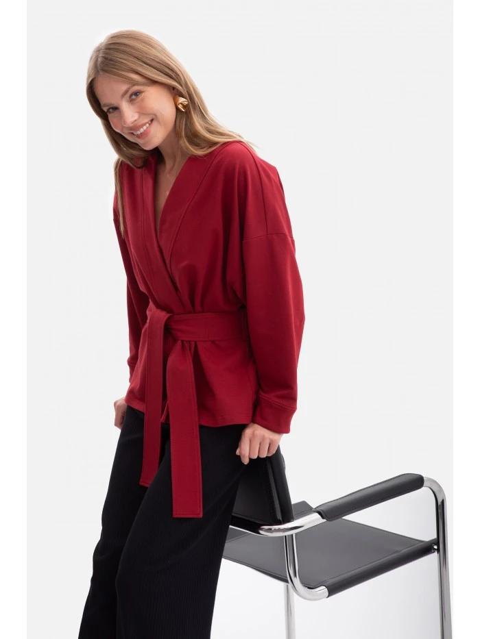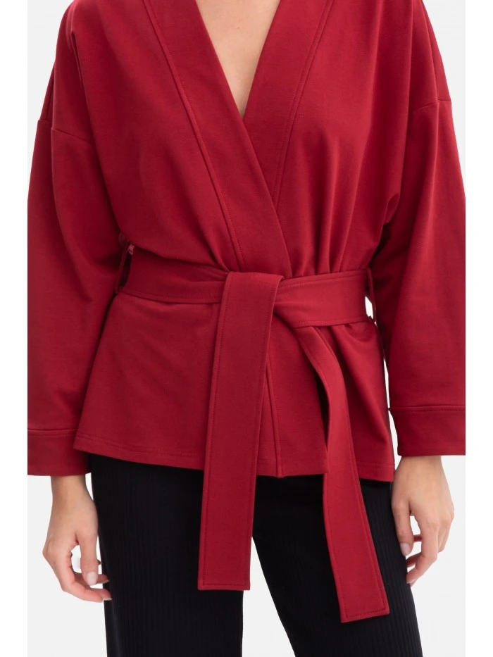 B297 Pletené sako bez límce s otevřenou přední částí - bordó