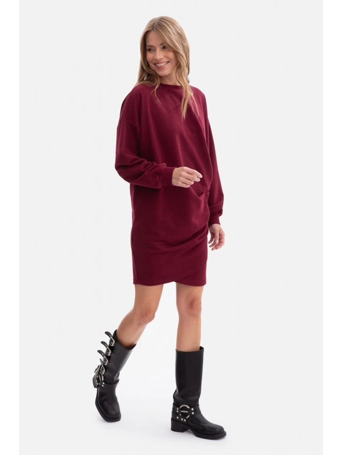 B298 Úpletové šaty s bočními záhyby - vínové