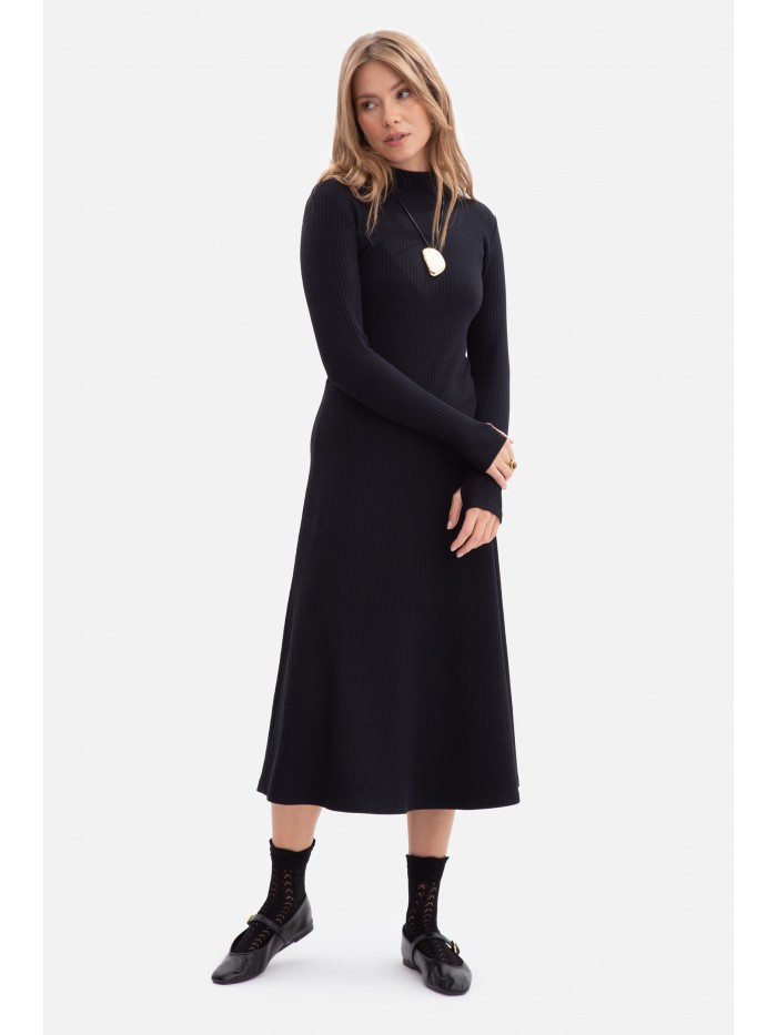 95% bavlna 5% elastan MATERIÁL Materiál: žebrovaný úplet, hmotnost 250 g PODROBNOSTI O PRODUKTU Zapínání: žádné - slip-on styl Límec: stojáček u krku Kapsy: žádné Rukávy: dlouhé, vypasované s průstřihy na palec Podšívka: žádná Model: B299 Navrženo a vyrobeno v Polsku z látky vyrobené v Polsku Modelka na fotografii měří 171 cm a má na sobě velikost S/M STYL A STŘIH Střih: vypasovaný v horní části, střižený v linii boků a rozšířený směrem k lemu Tvar: vymezený pas, mírně rozšířený spodní díl Délka: midi, do půli lýtek