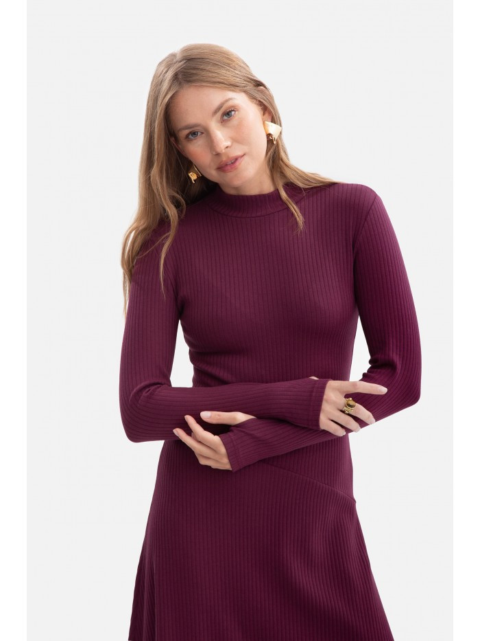 Přidání recenze k B299 Žebrované midi šaty s asymetrickým pasem - švestka