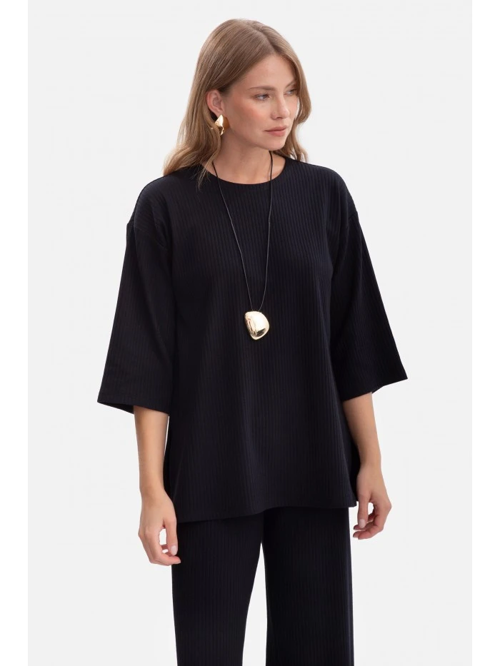 B301 Žebrovaný pletený top - černý