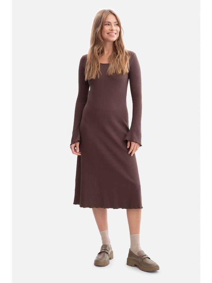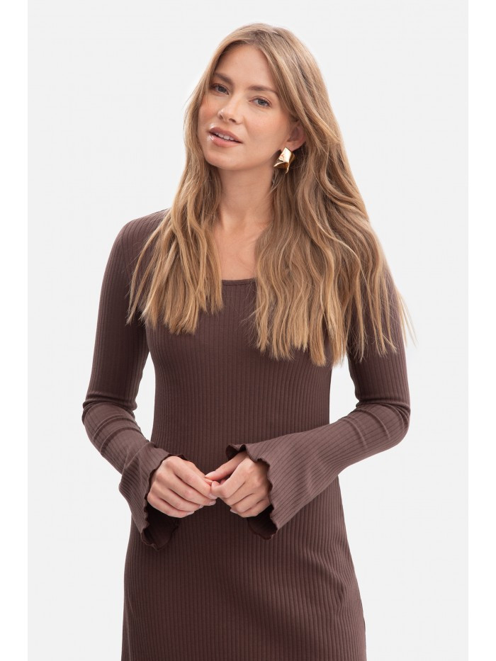 B308 Midi šaty z žebrového úpletu - hnědé
