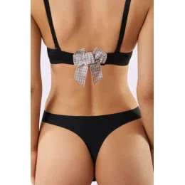 Károvaná mašlička na zapínání podprsenky je chytrý módní trik, kterýóvám pomůže skrýt podprsenku v šatech s otevřenými zády.