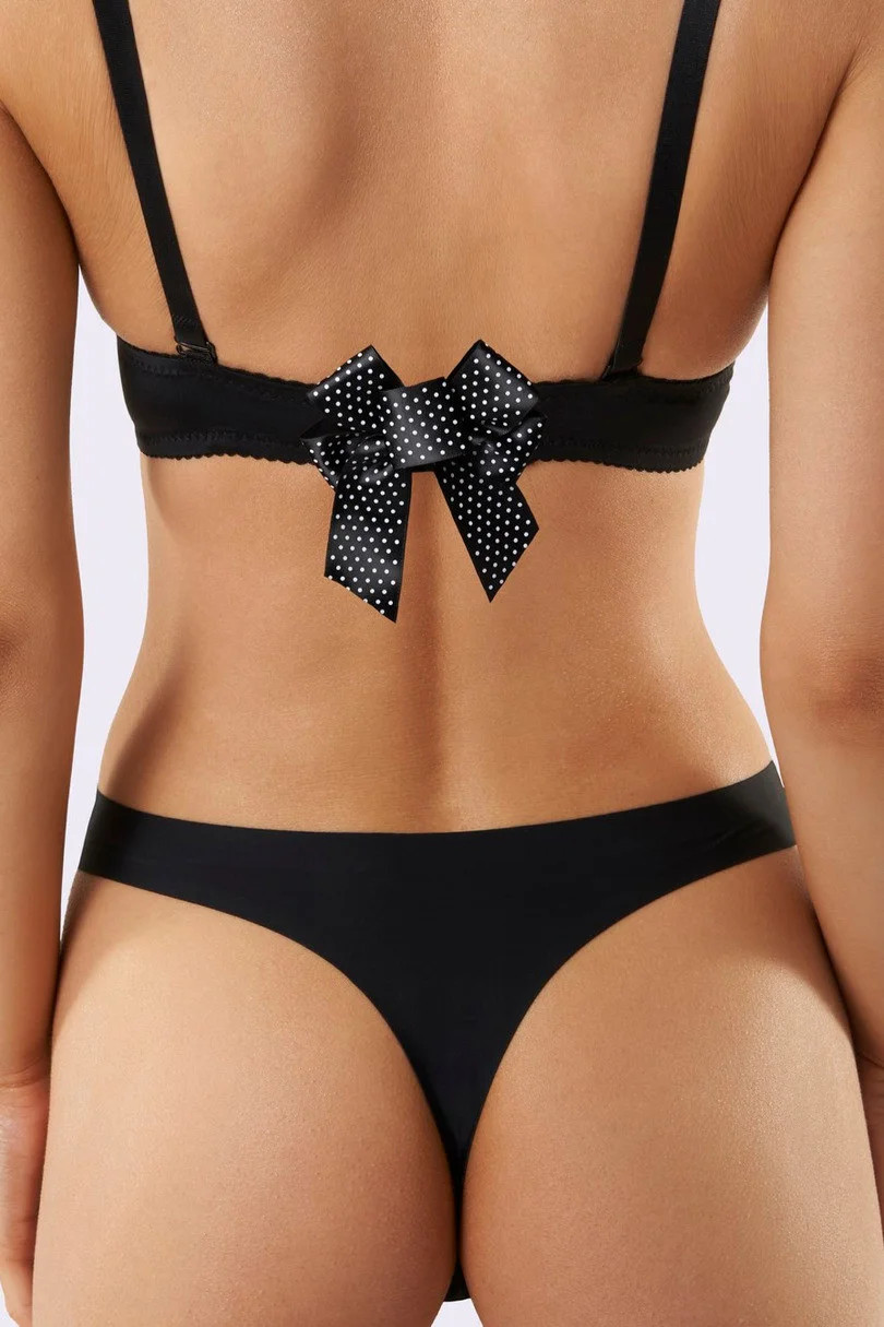 Puntíkatá mašlička na zapínání podprsenky je chytrý módní trik, jak skrýt podprsenku v šatech s otevřenými zády.