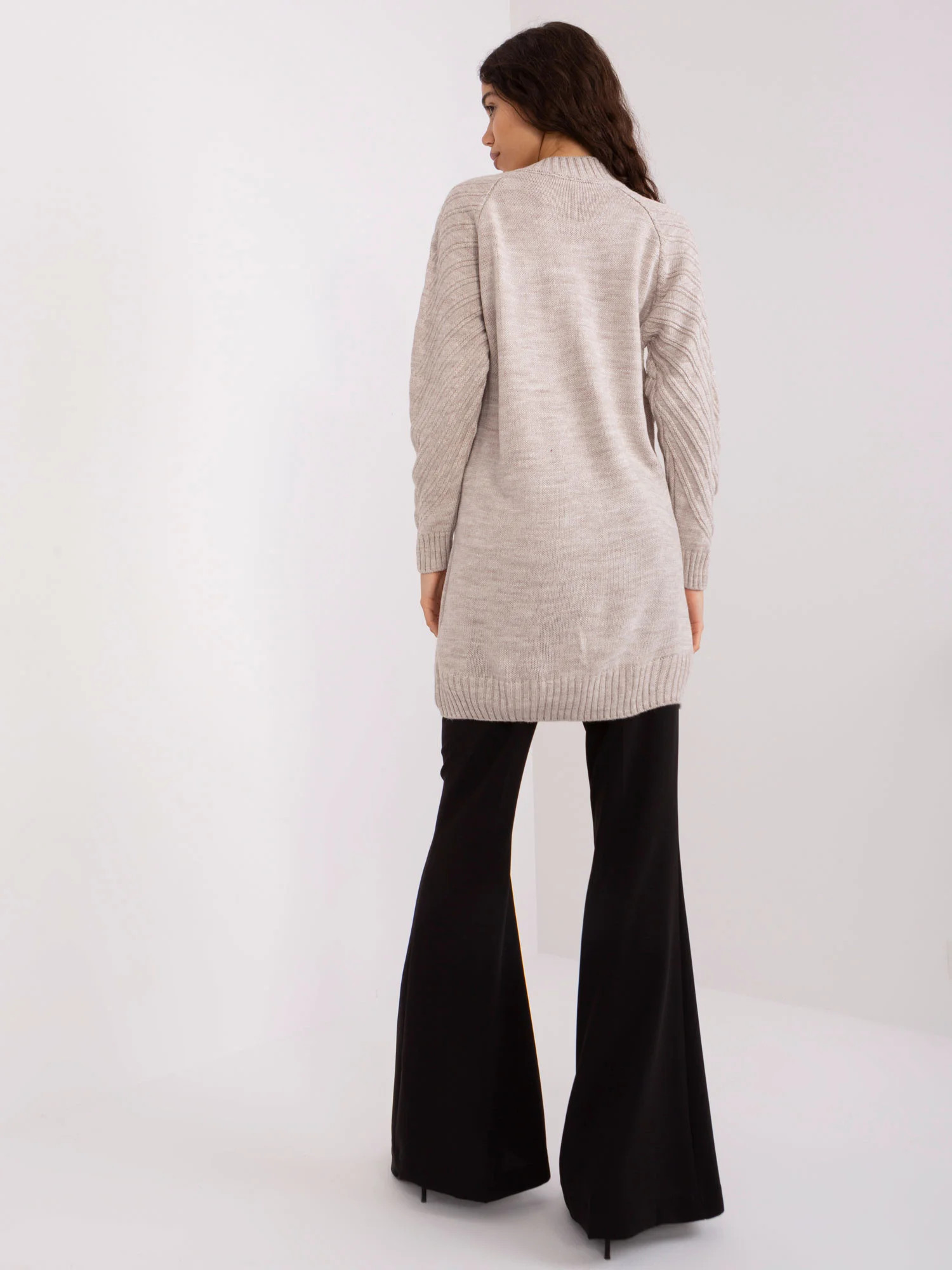 světle béžový dlouhý oversize svetr s žebrovanými manžetami .