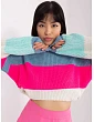 Fialový a modrý pruhovaný svetr nadměrné velikosti .