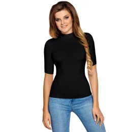 Bluzka marki Babell. Model Layla. Produkt został wykonany z 94% wiskoza, 6% elastan. Długość rękawa: krótki. Rodzaj dekoltu: stójka. Produkt damski.