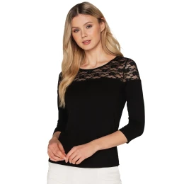 Halenka značky Babell, model Melanie, vyrobená z 94 % viskózy, 6 % lycry. Vlastnosti výrobku: elegantní s krajkou z příjemné viskózy. délka rukávu: 3/4. Dámský výrobek. typ výstřihu: kulatý.