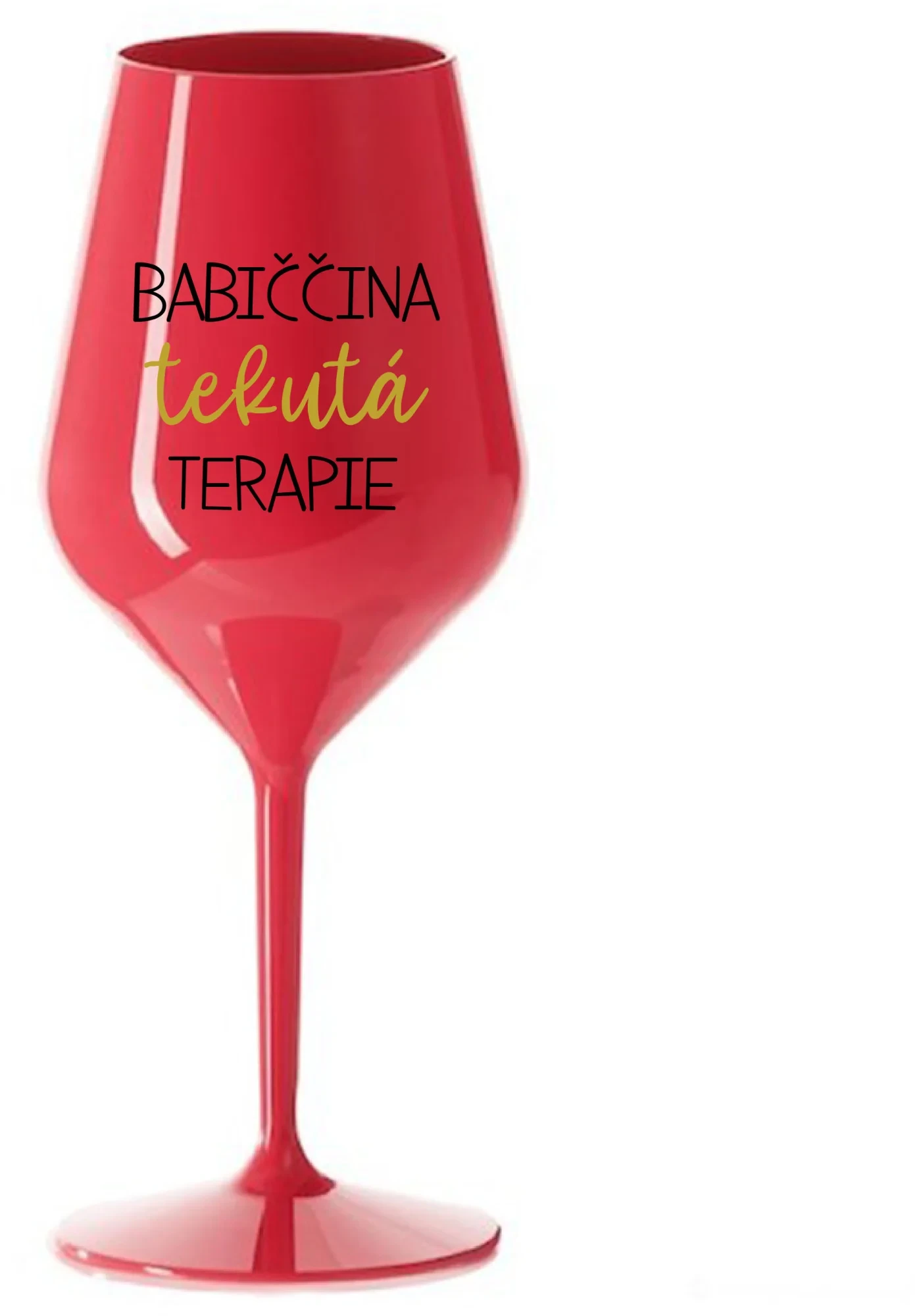 BABIČČINA TEKUTÁ TERAPIE - červená nerozbitná sklenice na víno 470 ml