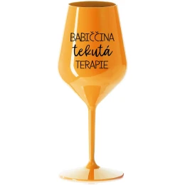 BABIČČINA TEKUTÁ TERAPIE - oranžová nerozbitná sklenice na víno 470 ml