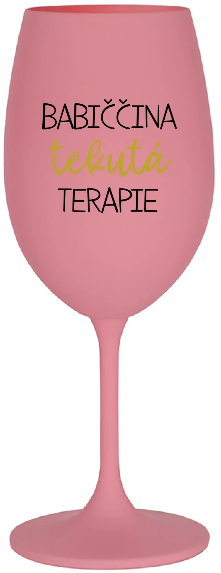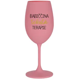 BABIČČINA TEKUTÁ TERAPIE - růžová sklenice na víno 350 ml