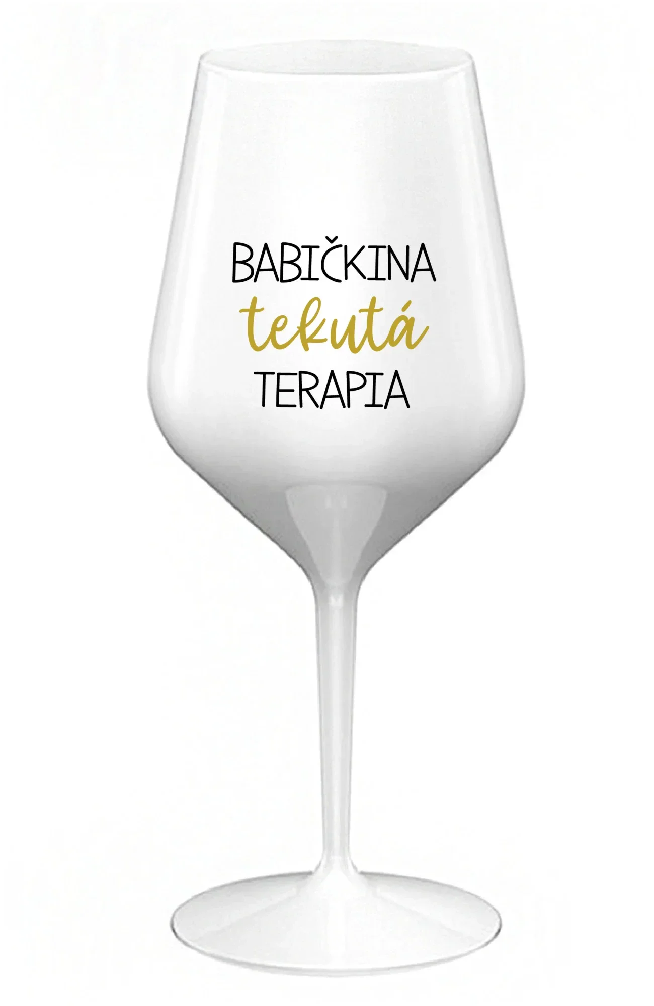 BABIČKINA TEKUTÁ TERAPIA - biely nerozbitný pohár na víno 470 ml