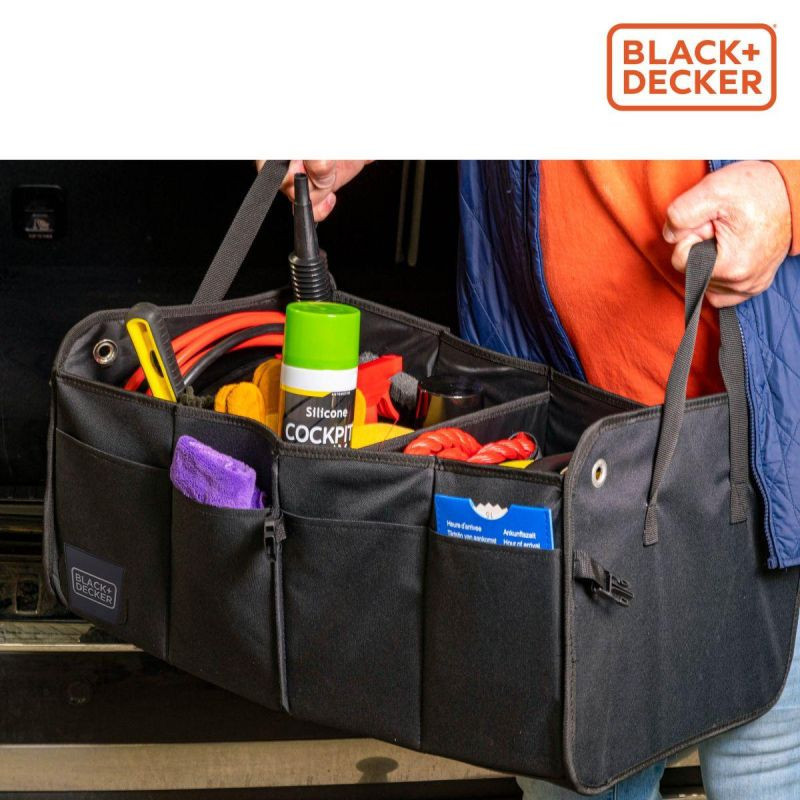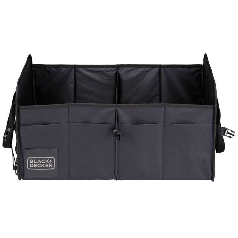 Potřebujete způsob, jak udržet pořádek v zavazadlovém prostoru bez zbytečných starostí? Organizér BLACK+DECKER 59x36x30 cm se dvěma přihrádkami a bočními kapsami je hotovým řešením - sbalte, uspořádejte a jeďte!