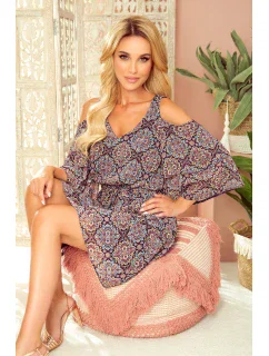 BAKARI - Vzdušné šifónové dámské šaty se vzorem "boho" a s dekoltem 295-1