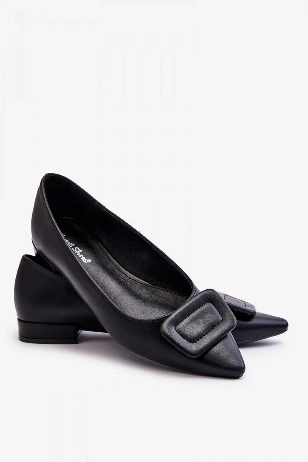 Tyto klasické dámské baleríny mají na přední straně ozdobu. Jsou vyrobeny z ekologické kůže. Měkká stélka zajistí pohodlné nošení bot. Tyto boty jsou posazeny na plochém podpatku. Tento model má špičatou špičku, která opticky zeštíhluje nohy. Tyto baleríny můžete využít k mnoha outfitům, a to jak k šatům, tak k sukním a kalhotám.