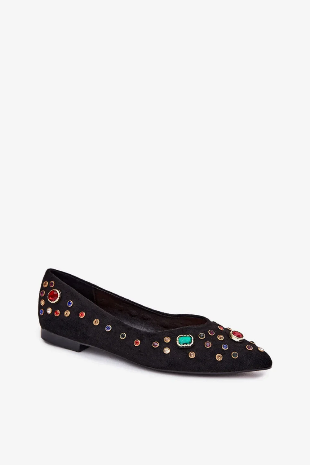 Baleríny dámské vyrobené z ekologického semiše, zdobené krystalky, které jim dodávají eleganci a lesk. Špičaté špičky opticky prodlužují nohy, což botám dodává štíhlý a stylový vzhled. Skvělé na formální i každodenní příležitosti.