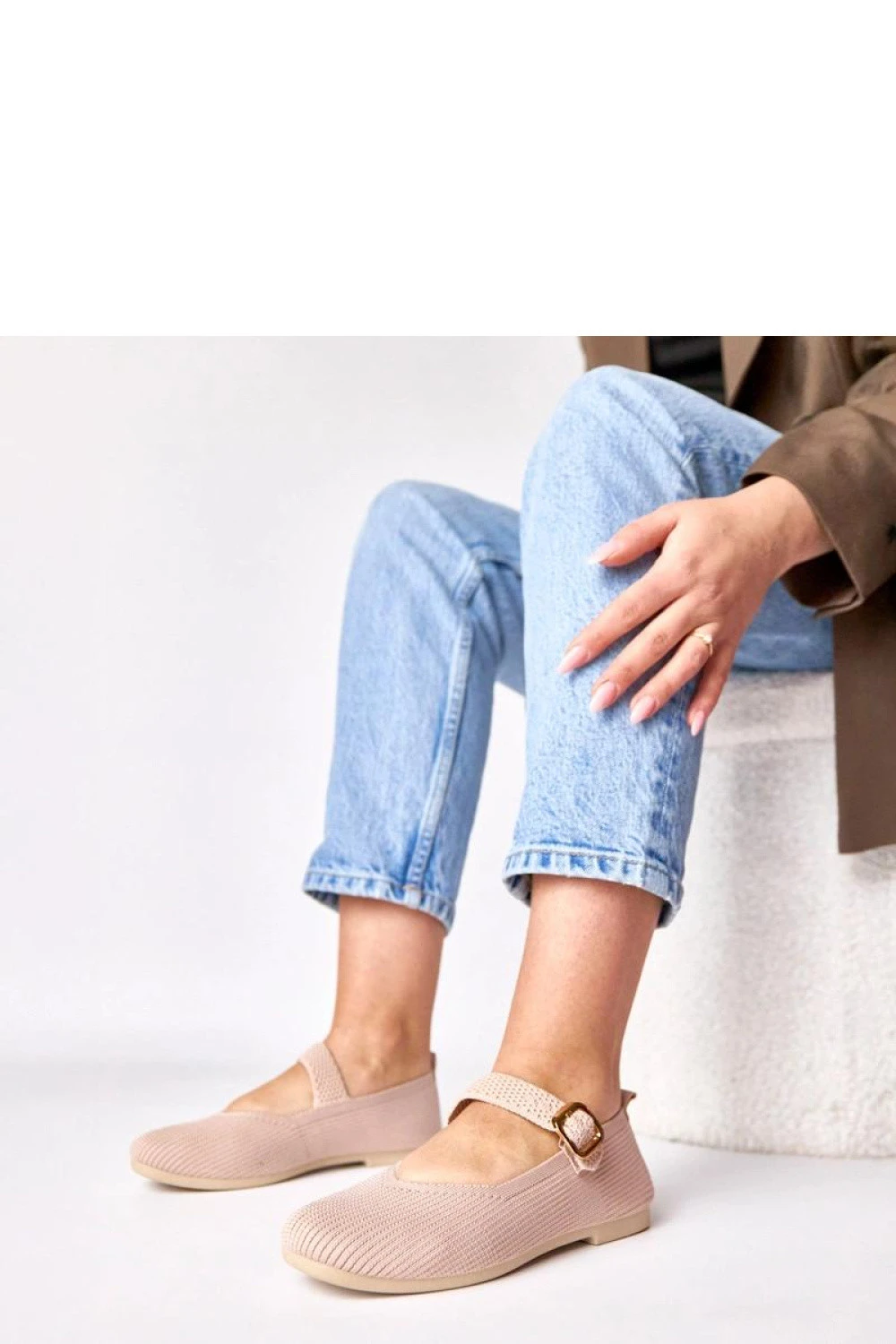 Elegantní baleríny s páskem jsou jemným a ženským návrhem na každý den i na speciální příležitosti. Vyrobené z lehké, příjemné na dotek látky, poskytují pohodlí nošení a skvělé přizpůsobení noze. Model má špičatou špičku, která opticky zjemňuje nohu a dodává stylizaci elegance. Nízká konstrukce a jemný podpatek o výšce 1 cm zaručují pohodlí i při dlouhodobém nošení. Zapínání páskem s přezkou nejen stabilizuje nohu, ale také představuje módní akcent zdůrazňující klasický charakter obuvi. Jsou to ideální baleríny pro ženy, které ocení kombinaci pohodlí, lehkosti a nadčasového stylu.
