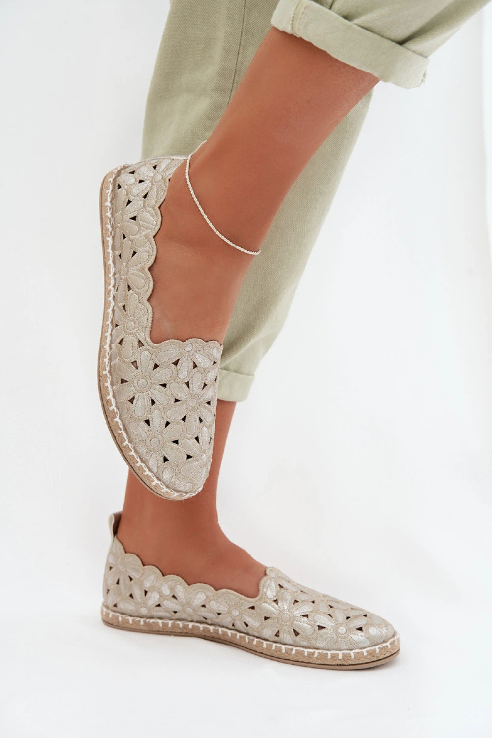 Dámské baleríny vyrobené z textilního materiálu se květinovým vzorem. Tyto boty jsou ideální volbou na jaro-létní sezónu! Vložka je vyrobena z ekologické kůže na jemné pěně. Model se zasouváním. Kulatá špička. Velmi pohodlná a stylová obuv. Podrážka je vyrobena z pryžového materiálu. Tyto baleríny skvěle ladí jak s každodenními, tak elegantními styly. Tyto boty by měly být nezbytnou součástí vaší šatní skříně!