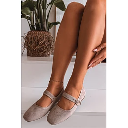 Baleríny dámské vyrobené z ekosuede. Plochá podešev zajišťuje, že model se skvěle hodí pro celodenní nošení, poskytující pohodlí každým krokem. Jemně zaoblené špičky zdůrazňují ženský charakter obuvi, a pásek na nártu s zlatou sponou představuje stylový prvek přitahující pozornost. Měkká stélka navíc zvyšuje pohodlí nošení. Jedná se o univerzální model, který skvěle doplní jak každodenní, tak elegantní stylizace, ideální do práce, na schůzky nebo pro procházky.
