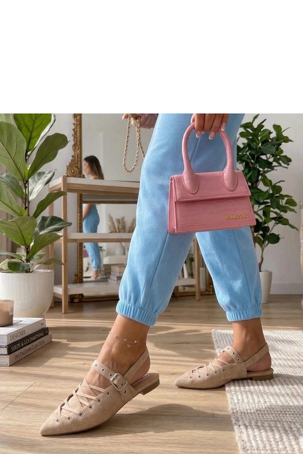 Elegantní baleríny vyrobené z měkké, ekologické semišové kůže jsou stylovým návrhem pro ženy, které ocení jemnou klasiku s módním akcentem. Jejich jemná struktura dodává obuvi výjimečný charakter a skvěle ladí jak s každodenními, tak s elegantnějšími styly. Špičatý nos opticky zeštíhlí nohu a dodá celkový šmrnc. Model se vyznačuje ozdobným šněrováním, které zdůrazňuje jeho unikátní design, a praktickým zapínáním na sponu umožňujícím nastavení a lepší přizpůsobení noze. Zapínání na zámek zajišťuje pohodlné nošení každý den. Vložka z ekologické kůže zvyšuje pohodlí nošení a plochý podpatek výšky 2 cm zaručuje stabilitu a pohodlí po celý den. Je to ideální volba pro ženy hledající elegantní a zároveň pohodlnou obuv.