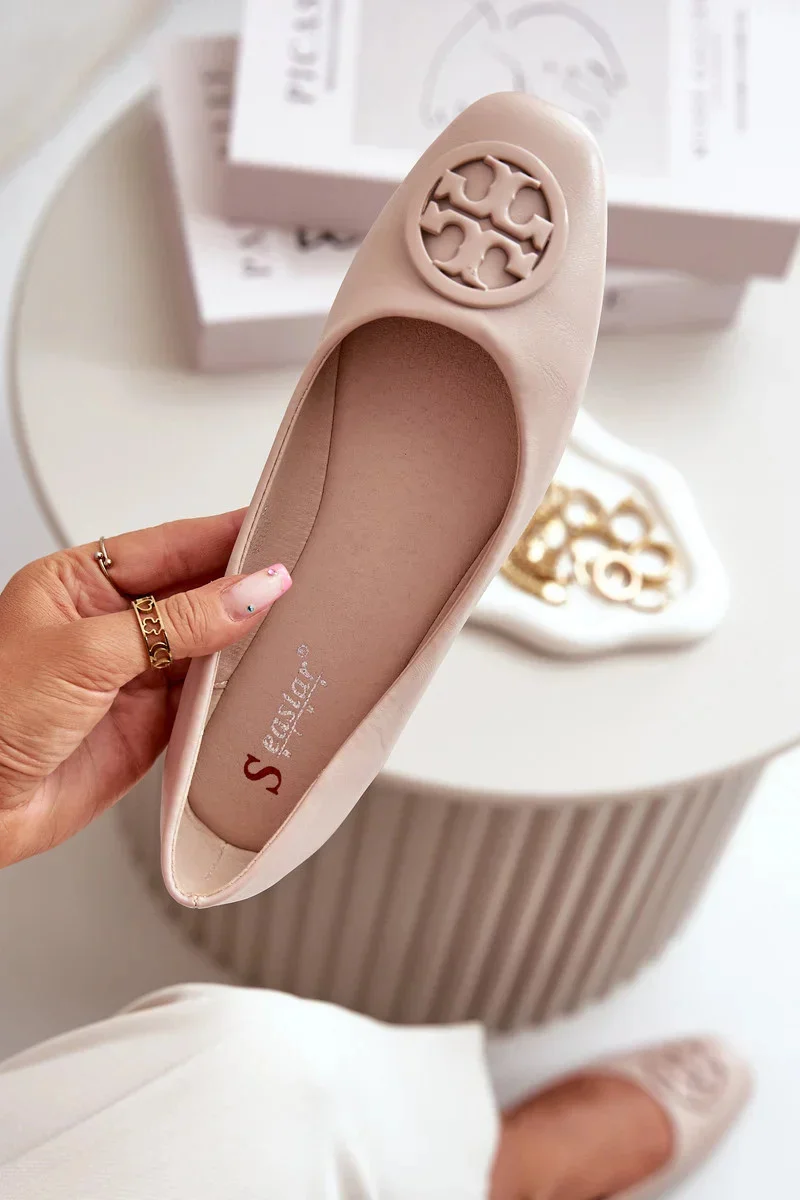 Baleríny Dámské S Ozdobou Eko Kožené Béžové Rhodike