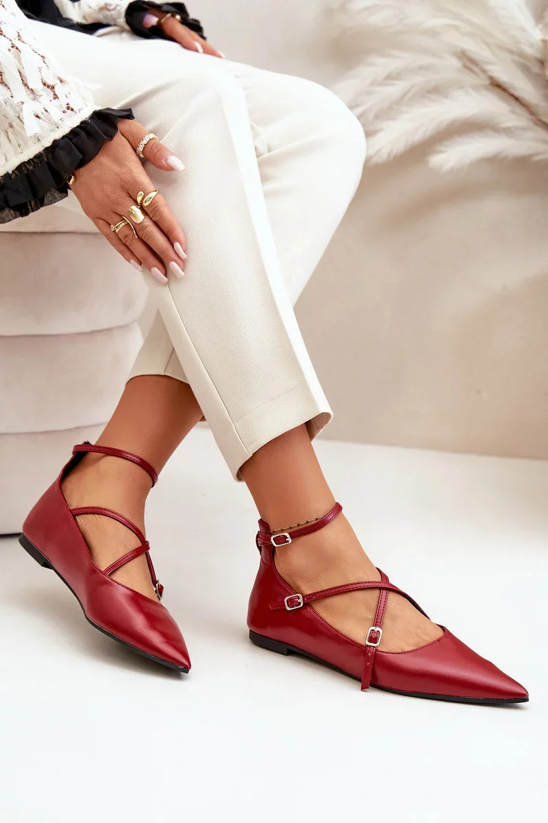 Baleríny Dámské S Špičatými Špičkami A Proplétajícími Se Pásky Bordové Violra