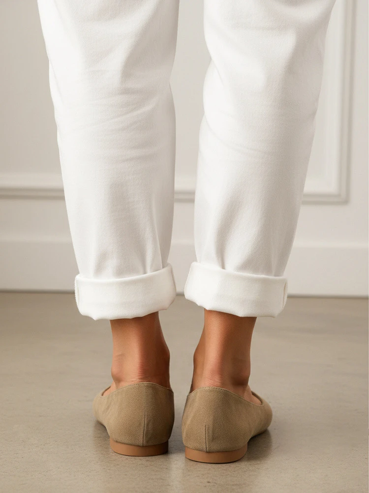 Baleriny dobrze komponują się z cygaretkami, materiałowymi spodniami oraz jeansami o prostym kroju. Sprawdzają się w pracy, na spotkaniach oraz podczas codziennych wyjść, kiedy liczy się wygoda i schludny wygląd. Neutralny fason pozwala łączyć je zarówno z eleganckimi, jak i bardziej swobodnymi stylizacjami.