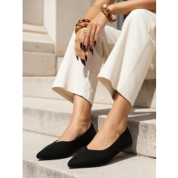 Baleriny damskie zamszowe z noskiem w szpic czarne FashionStreet ZY1424
