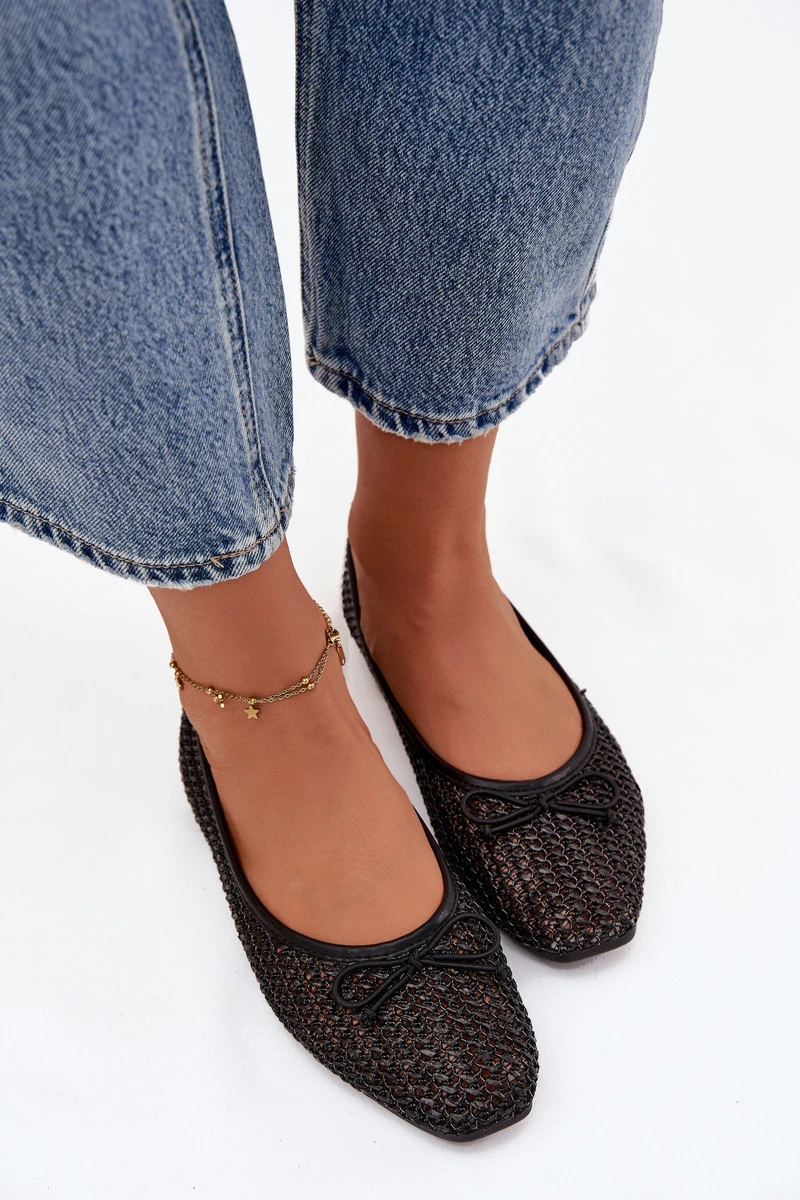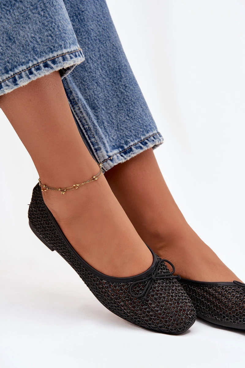 Baleríny S Pleteným A Mašlí Černé Belirra