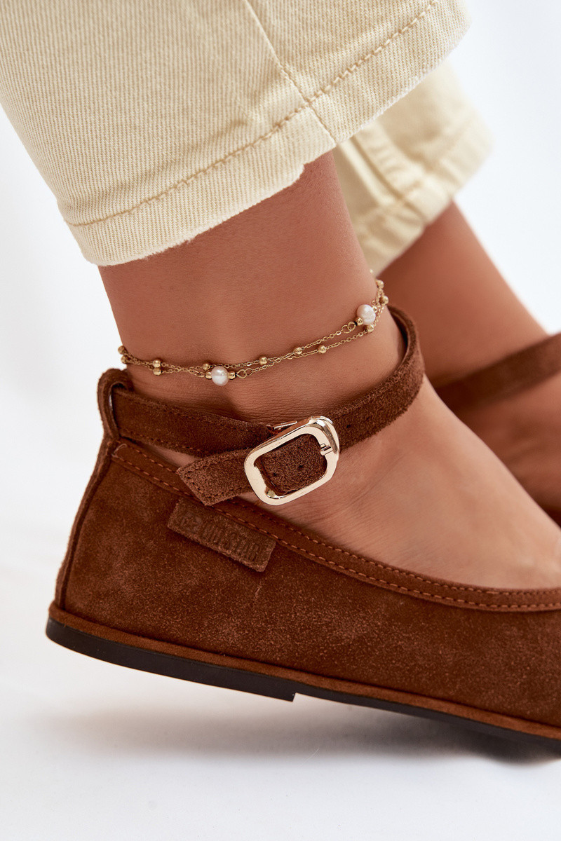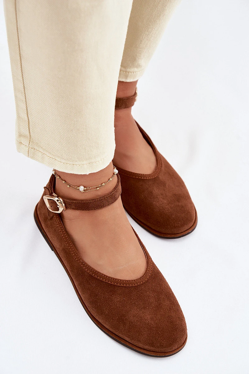 Dámské baleríny z přírodního semiše značky Big Star jsou elegantní model s ženským charakterem. Měkká semišová svrchní část zajišťuje pohodlí při nošení a stylový vzhled. Obuv má plochou podrážku, která podporuje pohodlí při chůzi. Zaoblené špičky poskytují volnost prstům a pás kolem kotníku s zlatou přezkou tvoří jemný dekorativní prvek a pomáhá přizpůsobit obuv tvaru nohy. Je to stylová volba, která skvěle doplní každodenní i elegantní outfity. Při výběru velikosti se řiďte tabulkou velikostí.