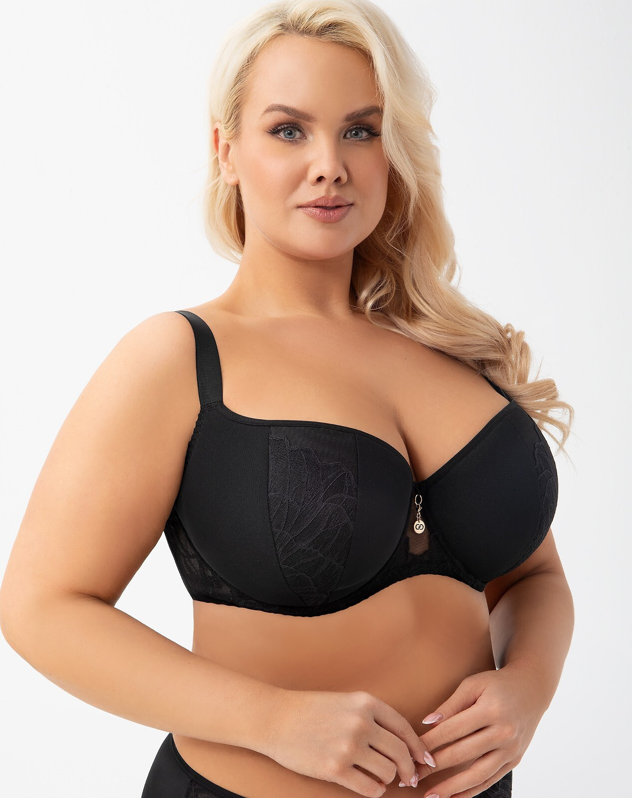 - určena pro ženy s malým, středním a velkým poprsím - poskytuje liftingový efekt a odhaluje poprsí - třídílné košíčky z pěny pokryté elastickým tylem a krajkou - zadní část z lycry pro velmi dobré přizpůsobení a oporu - boční velrybí kostice zabraňující vyhrnování - dvouřadý, třířadý a čtyřřadý systém zapínání na háčky s třístupňovým nastavením obvodu v závislosti na velikosti - ramínka nastavitelná ve třech šířkách: 14 (odepínací), 18 a 22 (neodepínací) - ramenní popruhy lze vzadu připnout, aby nebyly vidět pod více vykrojeným oblečením na zádech, takže nejsou vidět pod vykrojeným oblečením - vnitřní kapsy na vložky - kovové prvky v černé a stříbrné barvě (neobsahují nikl)