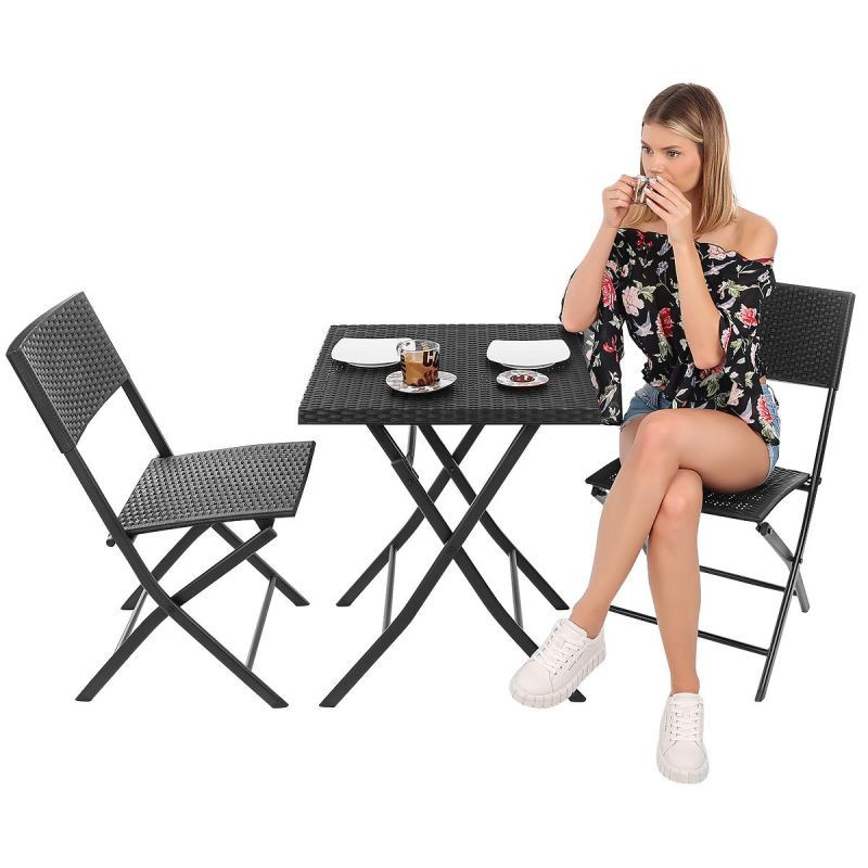 BALKONOVÝ NÁBYTEK SET STŮL 58X58X70CM A 2 ŽIDLE ČERNÁ