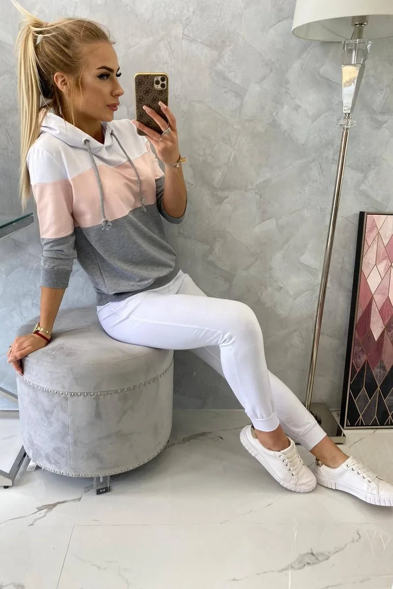 Představujeme vám sadu mikiny a kalhot v barevných pruzích. Sada je vyrobena z vysoce kvalitního materiálu. Velikost je univerzální a vyhovuje dámám velikosti S, M nebo L.