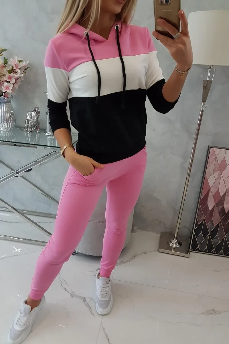 Přidání recenze k Barevná pruhovaná souprava světle růžová+ecru