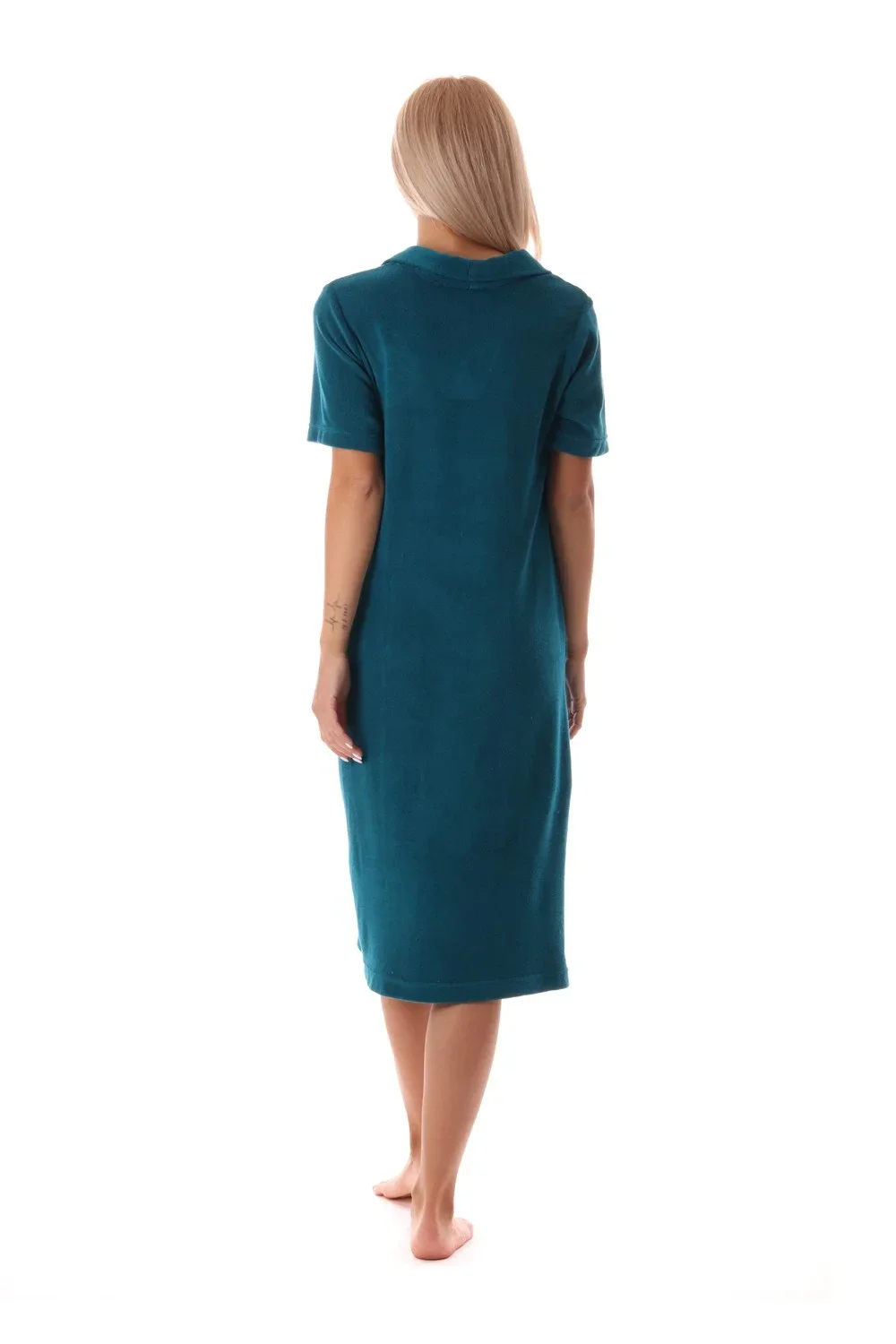 Lehké a pohodlné domácí šaty jsou ideálním společníkem pro všechny vaše domácí aktivity. Materiál je pružný a umožňuje volný pohyb, límeček dodává šatům sportovní vzhled.