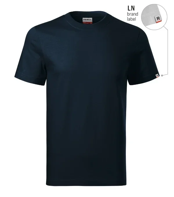 odolné, ideální do pracovního prostředí tubulární střih lem průkrčníku z žebrového úpletu 1:1 zpevňující páska od ramene k rameni Produkt je dostupný ve dvou variantách: s/bez brand labelu na lemu rukávu (viz přehled barev). Varianta bez brand labelu pouze do vyprodání zásob.